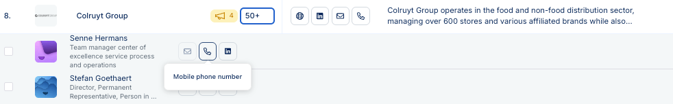 Avec l’enrichissement des numéros de téléphone mobile de Bizzy, vous pouvez accéder à des numéros de téléphone directs de vos contacts. Cela signifie moins d’intermédiaires, une plus grande probabilité de joindre le bon décideur et une prospection outbound plus efficace.