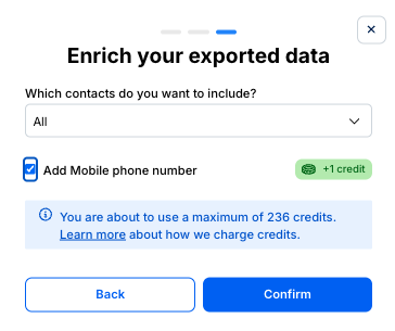 À une étape ultérieure, vous pouvez choisir d’inclure des numéros de téléphone mobile personnels. Bizzy enrichira alors les contacts pendant l’export ou la synchronisation.