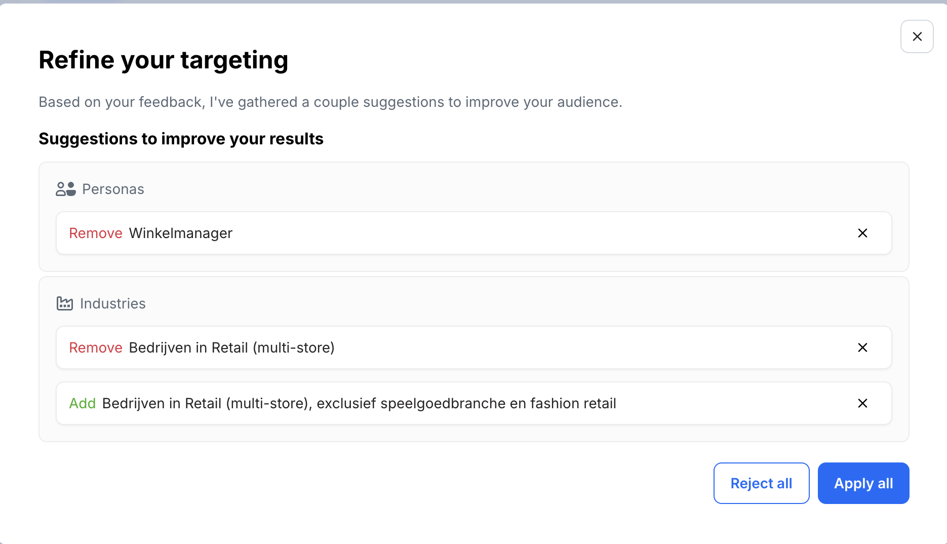 stelt hij suggesties voor om je ICP verder te verfijnen.